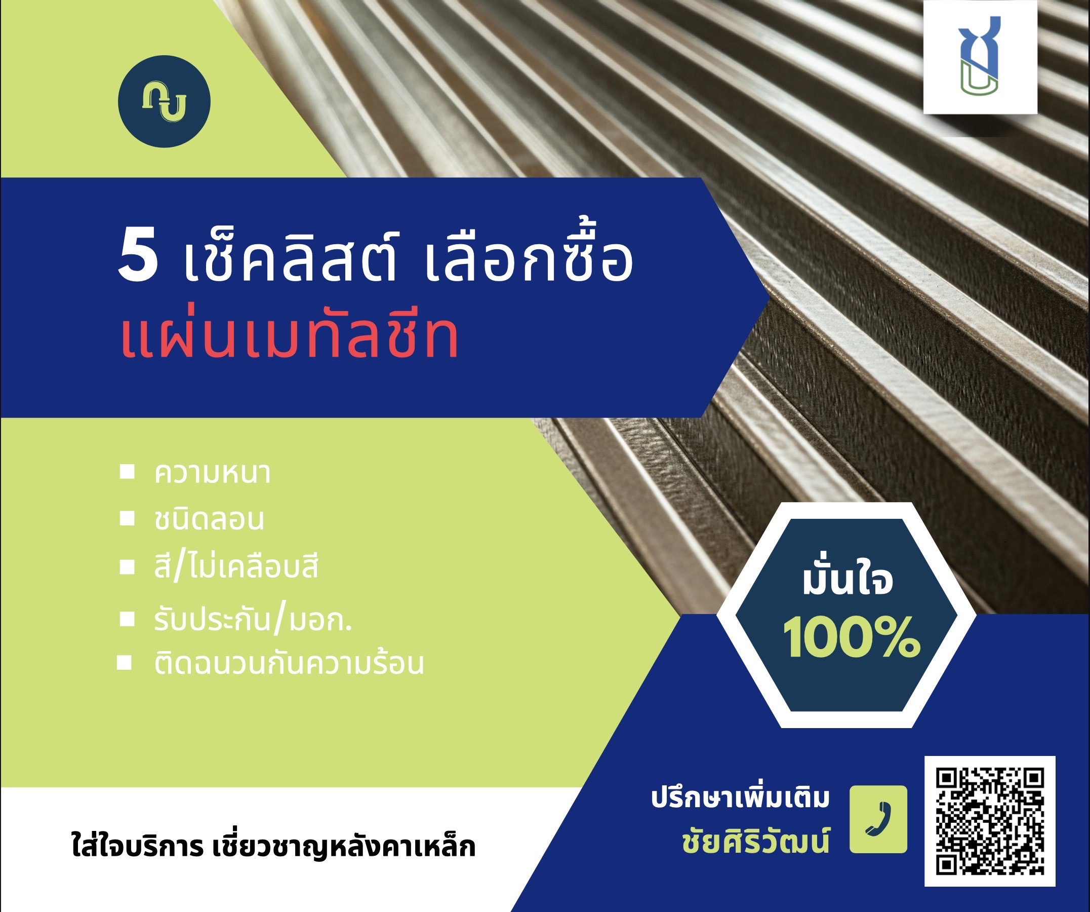 เมทัลชีทเป็นผลิตภัณฑ์แผ่นเหล็กเคลือบป้องกันการเกิดสนิมด้วย สังกะสี/อลูมิเนียม ที่ผลิตด้วยมาตรฐานระดับสากล นำมารีดเป็นแผ่นลอนตามวัตถุประสงค์ของผู้ใช้งาน ออกแบบได้หลากหลายหมดปัญหารั่วซึม ติดตั้งง่าย ประหยัดเวลาและงบประมาณ